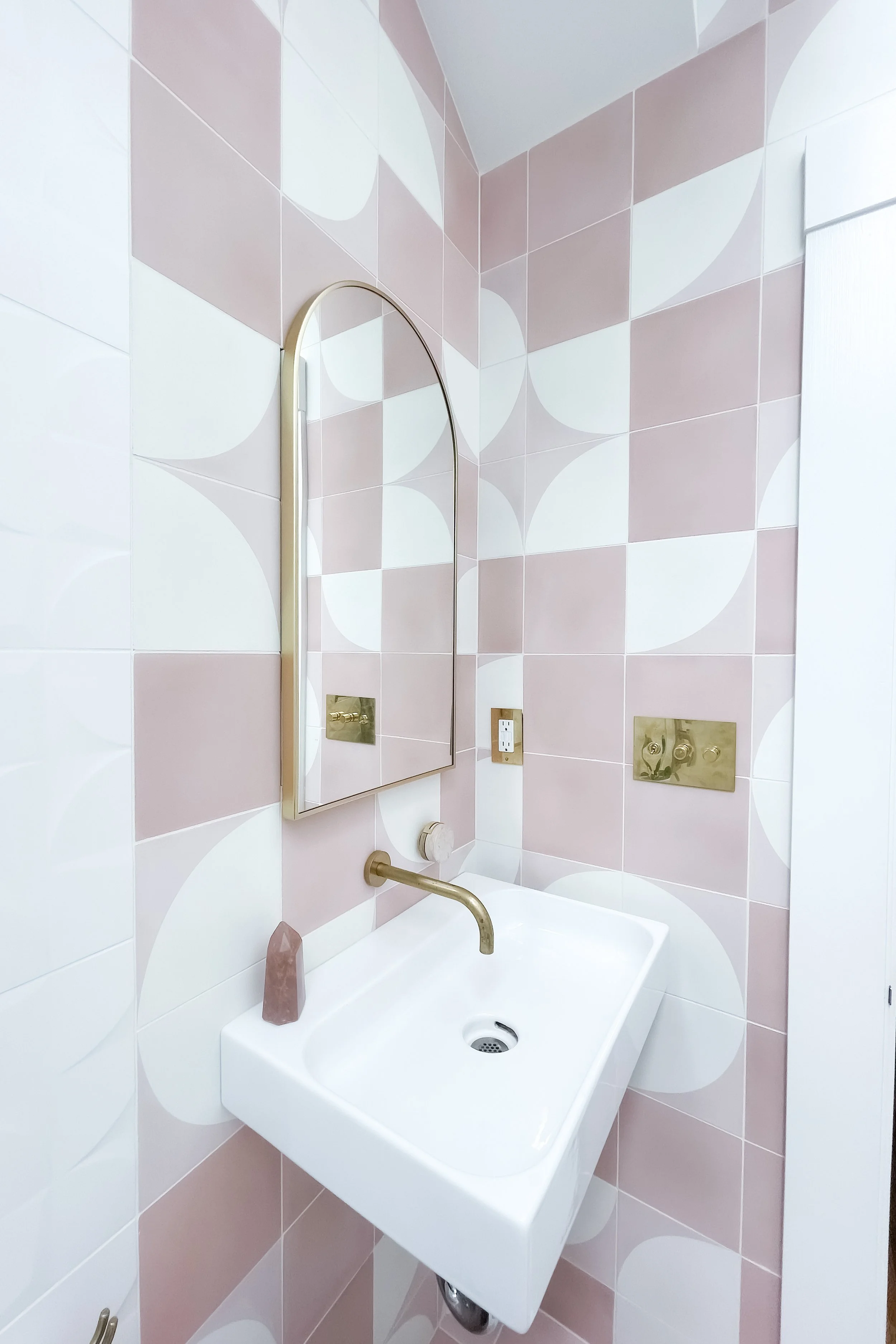 The result is a light, bright, and modern powder room—thoughtfully designed down to the finest details.